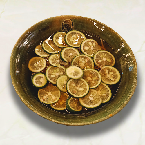 Le Sudachi Soba ce sont des soba (nouilles de sarrasin) servies froides avec des tranches de sudachi, des glaçons et un bouillon froid.
