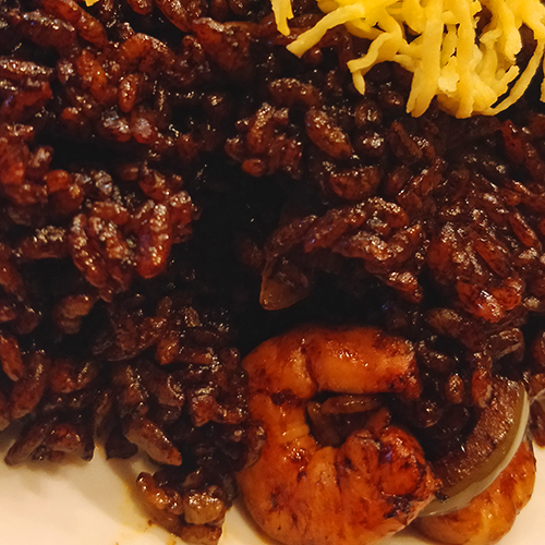 C’est du riz sauté avec des crevettes dans une sauce demi-glace qui vient donner la couleur au plat. C’est donc un plat légèrement sucré.