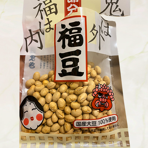 Lors du Setsubun, le jour qui célèbre l’arrivée du printemps, les Japonais ont pour coutume d’acheter des Fuku Mame pour la tradition appelée mame-maki (lancer de haricots).