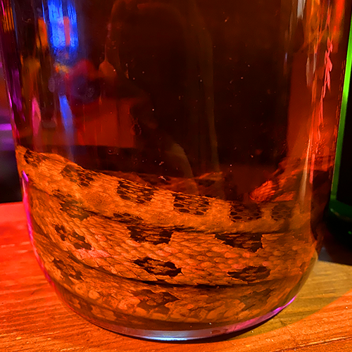 C’est de l’awamori mixé avec des herbes et du miel. Ensuite on rajoute une vipère entière dans la mixture. L’alcool dissout le venin et la boisson devient propre à la consommation.