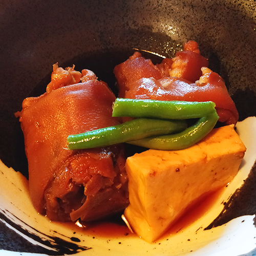 C’est des pieds de porc qu’on fait cuire en les faisant bouillir dans un bouillon à base de shoyu, en général.