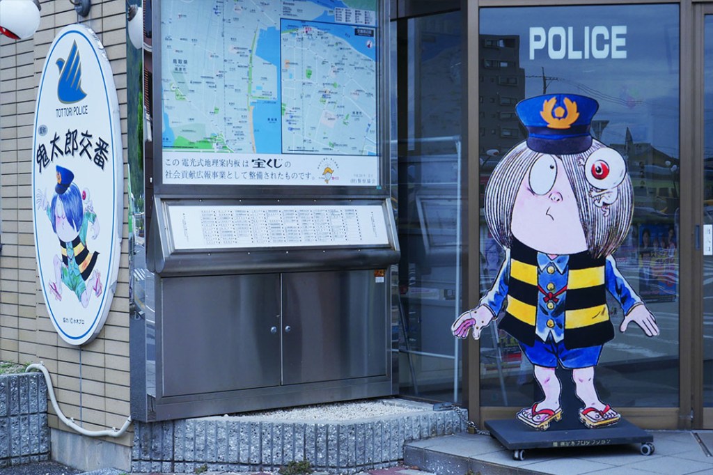 Globalement sur cette route tout est au thème de « Gegege no Kitaro », le poste de police, le train, les boites aux lettres, les bancs, les magasins…