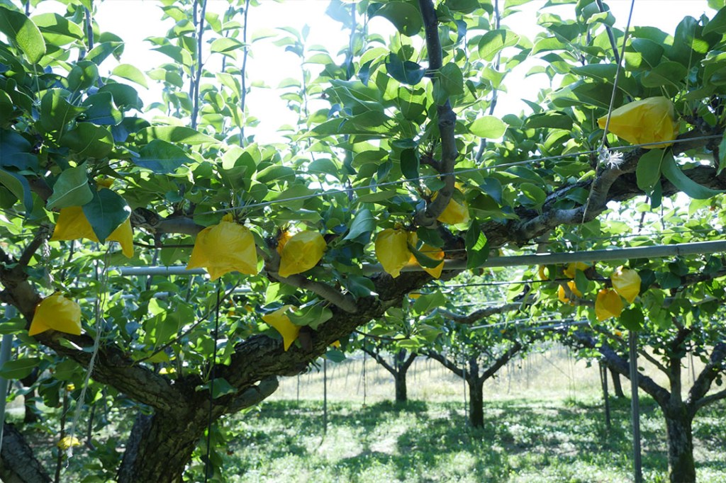Un verger où pour 6€ vous pourrez manger des poires de la variété Nashi à volonté.